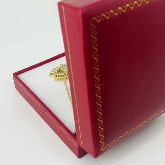 Decorated with diamond simulant accents this super shiny piece will certainly have all eyes on you—wear it as a bold fashion statement!