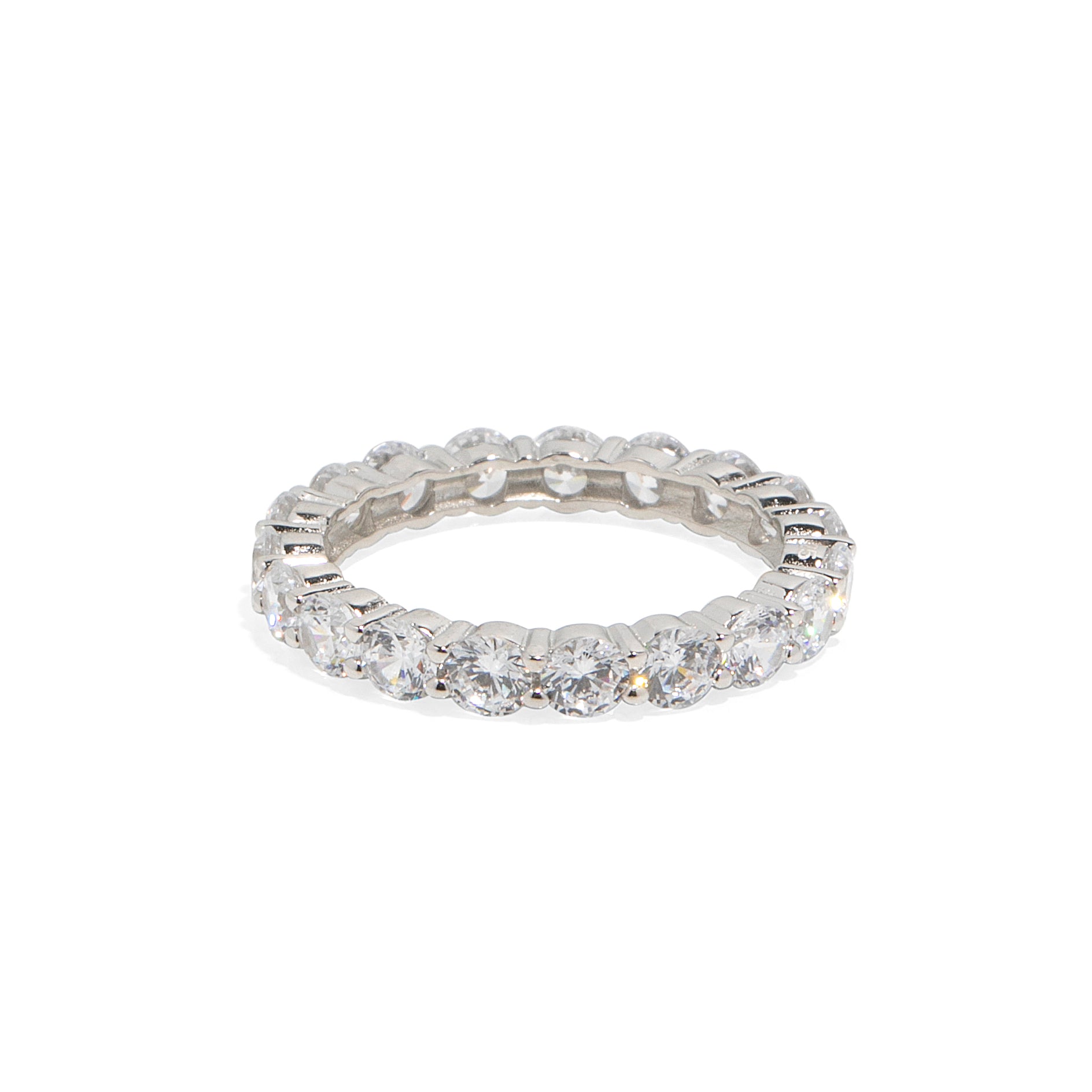 Our Angel ring is made with 18K white gold vermeil and 3.5mm stones. Vermeil is a pure .925 sterling silver core with a fine metal coating such as 18K gold in the case of the Angel ring.