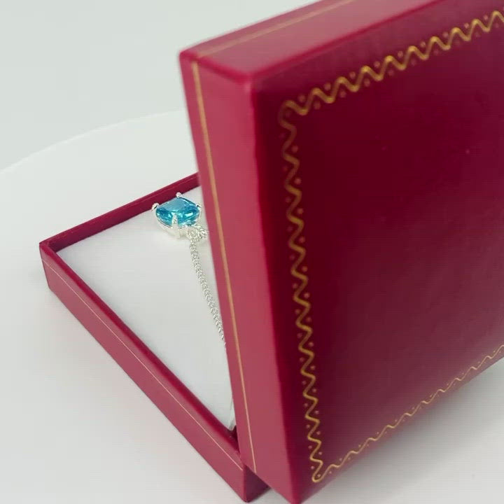 Our 2Ct blue stone pendant comes with an 18 inch .925 sterling silver necklace with 2 inch extender.